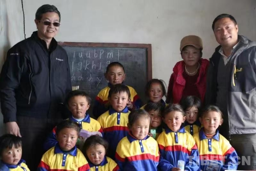 圖為陳人杰(右一)與西藏孩子們?cè)谝黄?nbsp; 受訪者供圖
