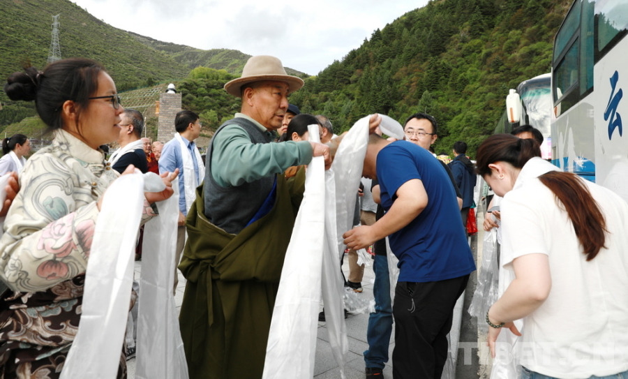 圖為5月15日,部分參加“同心·共鑄中國心”2025阿壩行大型公益活動(dòng)的醫(yī)務(wù)志愿者抵達(dá)四川省阿壩州馬爾康市。馬爾康市群眾向醫(yī)務(wù)志愿者們敬獻(xiàn)哈達(dá) 攝影:劉莉