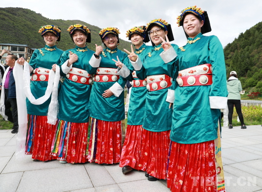 圖為身著嘉絨藏族盛裝的四川省阿壩州女孩們迎接“同心·共鑄中國心”大型公益活動(dòng)醫(yī)務(wù)志愿者們的到來 攝影:劉莉