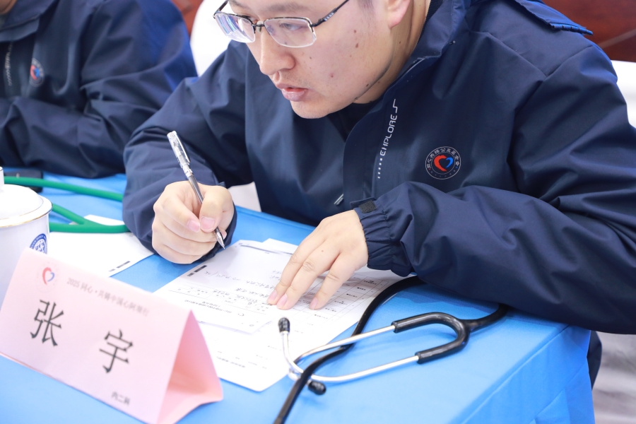 圖為北京市通州區(qū)婦幼保健院藥劑科主任馬月靜根據(jù)現(xiàn)場情況做相應記錄。此次義診結(jié)束后,馬月靜還為干警們進行了安全用藥科普知識講座 攝影:楊月云