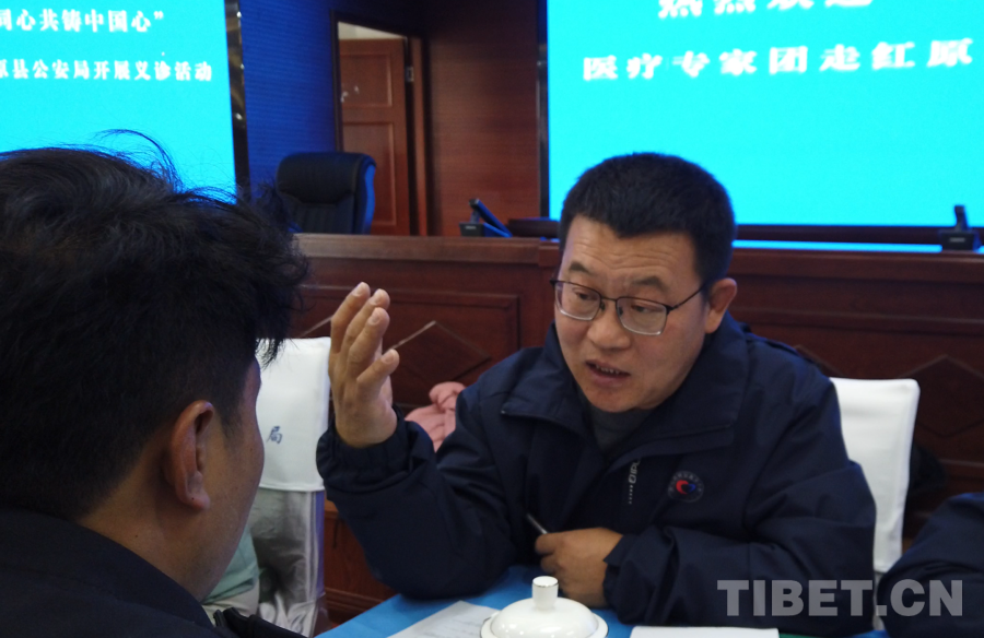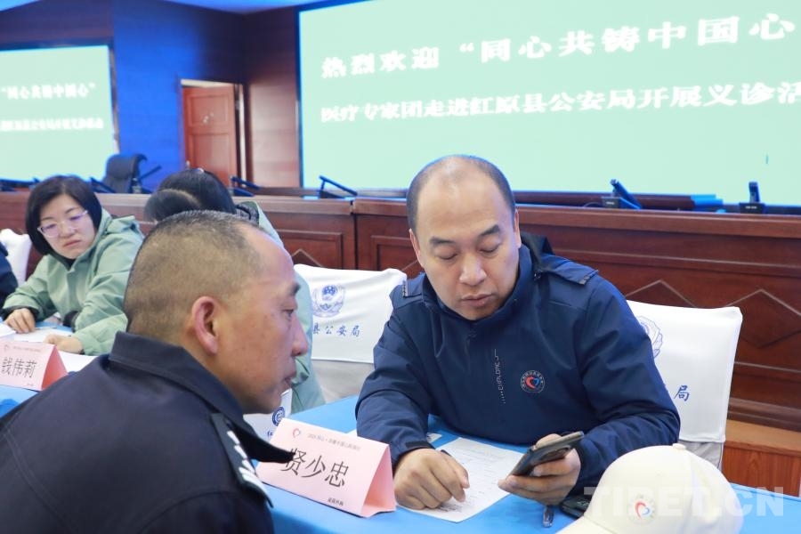 5月17日,在此次活動阿壩州紅原縣現(xiàn)場之一,“紅九團紅二連”來自北京通州區(qū)各醫(yī)院的12位醫(yī)生,在紅原縣公安局面向有就診需求的公安干警展開義診。