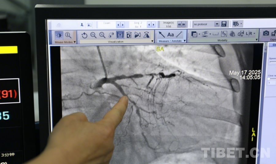 “冠脈造影結(jié)果非常糟糕,提示是三支病變,心臟的三根血管,前降支近端80-90%的彌漫狹窄、中遠(yuǎn)段閉塞,回旋支近端80-90%的彌漫狹窄、中遠(yuǎn)段閉塞,右冠狀動(dòng)脈近端局限狹窄85%。由于右冠脈不是這次發(fā)病的罪犯血管,這次手術(shù)干預(yù)左側(cè)前降支和回旋支?!标広W茜與阿壩州人民醫(yī)院心內(nèi)科醫(yī)生們迅速制定了手術(shù)方案。
