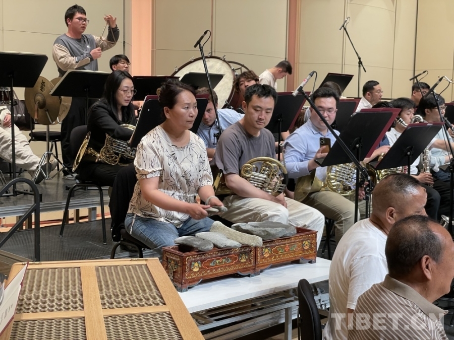 西藏傳統(tǒng)器樂同交響樂配合得相得益彰,讓聽眾們無不為之深深折服。西藏大號(藏語稱“銅欽”)低沉渾厚,展現(xiàn)了歷史的波瀾壯闊;扎木念琴聲輕快明朗,牛角胡(藏語稱“嗶旺”)婉轉(zhuǎn)悠揚,堆諧、弦子等傳統(tǒng)民間音樂特色鮮明,展現(xiàn)了中華優(yōu)秀傳統(tǒng)文化的豐富多彩;鷹笛(藏語稱“歸鈴”)高亢悠揚,西藏豎笛(藏語稱“雄林”)婉轉(zhuǎn)嘹亮,描繪了人與自然和諧共生的美麗畫卷。在樂曲創(chuàng)作中,還首次將石琴(藏語稱“奪丁”)、熱瑪琴與交響樂融合,既豐富了樂曲的表現(xiàn)力,也促進了傳統(tǒng)民族器樂的創(chuàng)新發(fā)展。