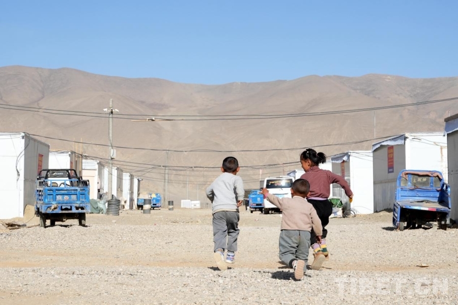 圖為日喀則市定日縣長所鄉(xiāng)雜村安置點,孩子們正在嬉戲打鬧 攝影:邊子捷