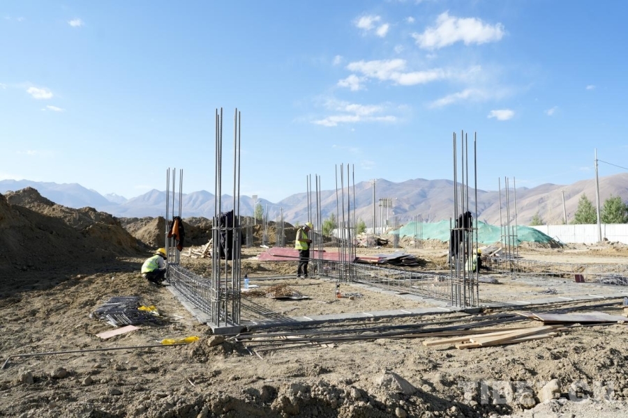在雜村,一座座安置板房間,婦女們圍坐一起編織氆氌,孩子們玩鬧嬉戲,時有工作人員入戶進行安全排查、普法宣傳,生活一如往常平靜安寧。而在距離安置點不遠處的工地上,卻呈現(xiàn)出一片繁忙的景象——運輸車穿梭其間,機器轟鳴,工人忙著將箍筋固定在地基中,雜村重建工作正有序而迅速地推進著。