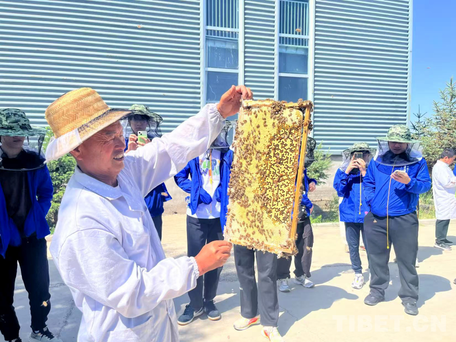 小小中華蜜蜂的“勞動成果”也不容小覷。在第44屆國際養(yǎng)蜂大會上,青藏華峰帶著高原蜂蜜斬獲國際金獎,完勝當時來自50多個國家和地區(qū)的上千個蜂蜜產(chǎn)品。如今,在政府的重視下,搭建平臺讓蜂蜜得到更好的展示,讓青藏華峰的品牌之路走得更穩(wěn)。當工作人員現(xiàn)場打開蜂箱,展示如何采集蜂蜜時,青少年們紛紛上前嘗試,親身體驗養(yǎng)蜂的樂趣。當金黃的蜂蜜緩緩流出,空氣中彌漫著香甜氣息,學生們臉上洋溢著興奮與驚喜,第一次吃到從蜂巢里取出的新鮮蜂蜜,感受大自然饋贈的美好。