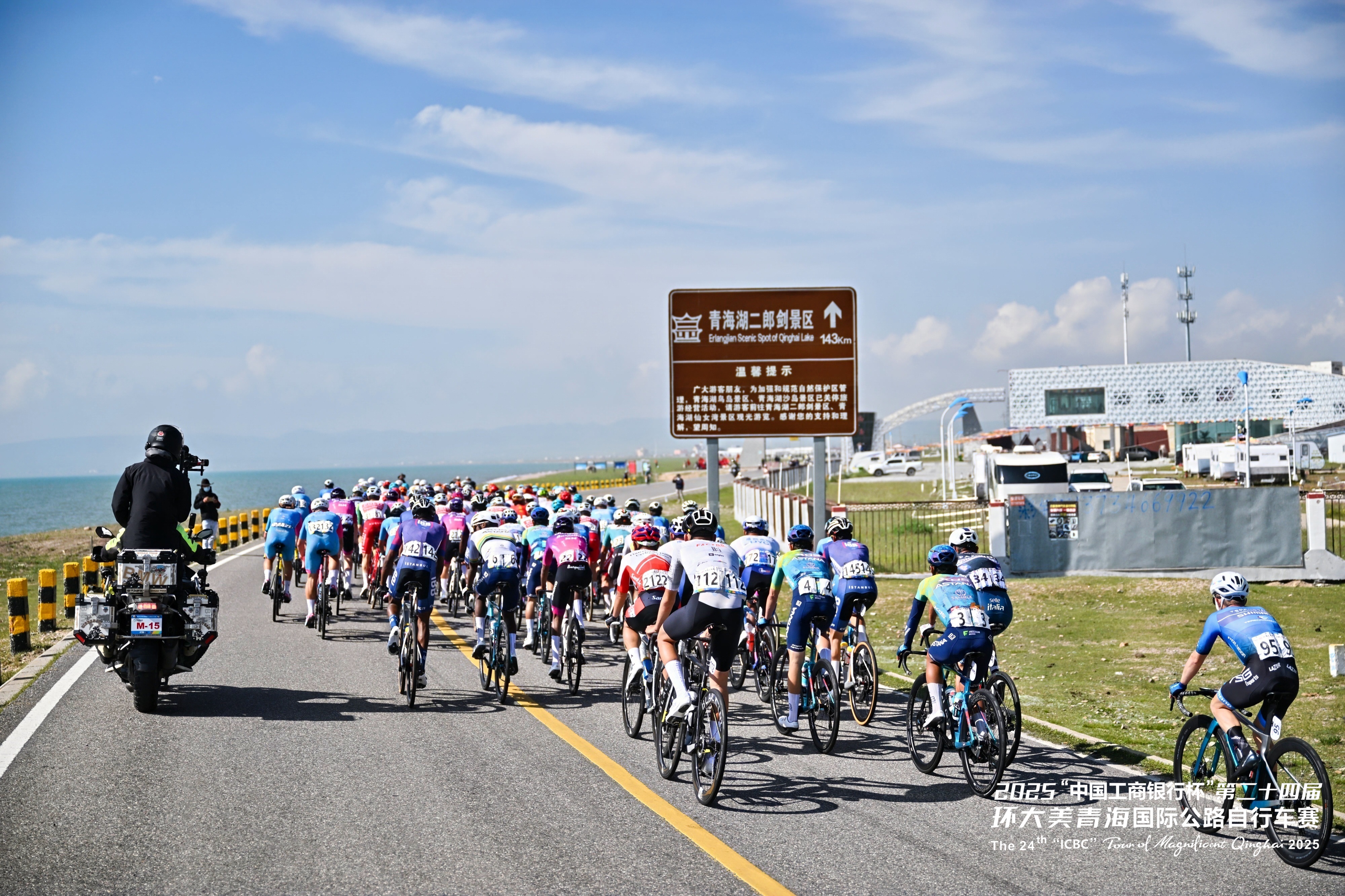第二十四屆環(huán)青賽第六賽段——剛察-共和賽段,是本屆賽事距離最長的賽段。車隊出發(fā)后不久便駛?cè)胫沫h(huán)湖公路,這段標(biāo)志性賽程承載著環(huán)青海湖賽事的精髓和回憶。作為環(huán)青賽的前身,環(huán)湖賽段以其獨特魅力吸引著全球騎行愛好者,人們沿著賽事路線打卡騎行,盡情領(lǐng)略青海湖畔的壯美風(fēng)光。