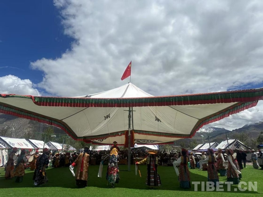 中國(guó)西藏網(wǎng)訊 鼓鈸聲穿透晨霧,藍(lán)面具在河畔的陽(yáng)光下流轉(zhuǎn)著金屬般的光澤。7月16日,日喀則市南木林縣非遺林公園內(nèi),一場(chǎng)跨越七百年的湘巴藏戲展演正酣。臺(tái)上,11支藏戲隊(duì)輪番演繹《智美更登》《諾桑法王》等藏戲經(jīng)典劇目,古老唱腔與現(xiàn)代舞美交相輝映;臺(tái)下,千余名群眾凝神駐足,酥油茶的醇厚香氣伴著此起彼伏的喝彩裊裊升騰——這是南木林獻(xiàn)給西藏自治區(qū)成立60周年的非遺厚禮,更是“藏戲之鄉(xiāng)”文化基因的鮮活注腳。