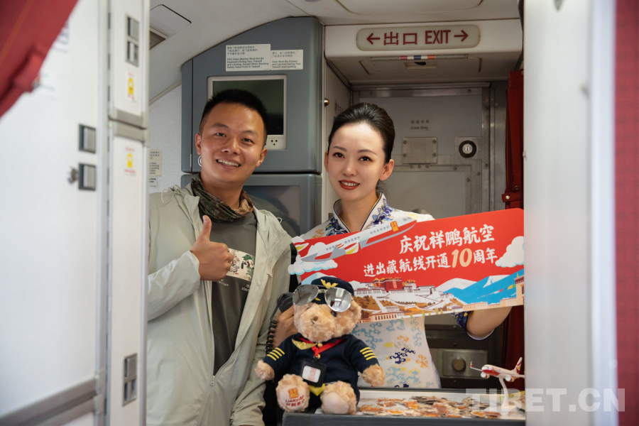 在當(dāng)天從喀什飛往阿里的航班上,祥鵬航空策劃開展了主題活動,慶祝航線開通10周年以及西藏自治區(qū)成立60周年。搭乘航班的每位旅客均收到了潔白的哈達(dá);有獎問答環(huán)節(jié)氣氛熱烈,客艙內(nèi)笑聲與掌聲此起彼伏;旅客分享的自己與高原的故事,更令不少人動容。航班在祝福、歡樂與感動中飛向雪域高原。