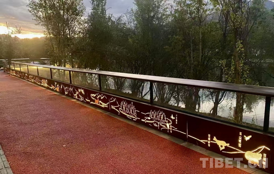 圖為拉薩兩島內(nèi)河綠色生態(tài)廊道上連通南北岸的廊橋護欄裝飾著吉祥八寶圖案 攝影:劉莉