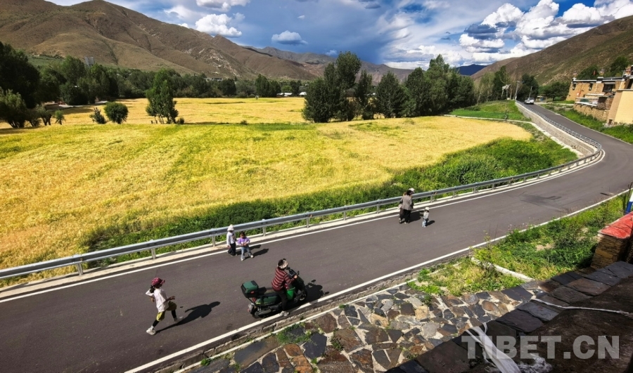 恬靜美麗的鄉(xiāng)村,豐收的季節(jié),徜徉在強(qiáng)吉村的歷史與現(xiàn)實之中,一切普通又不普通。 (中國西藏網(wǎng) 記者/劉莉)