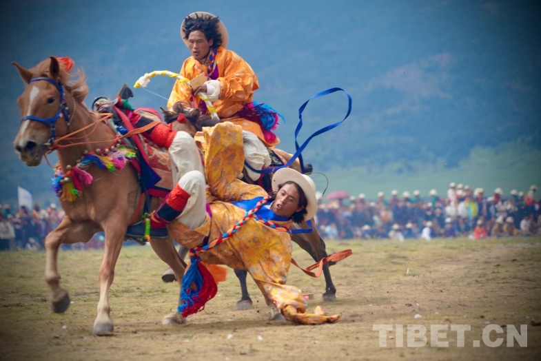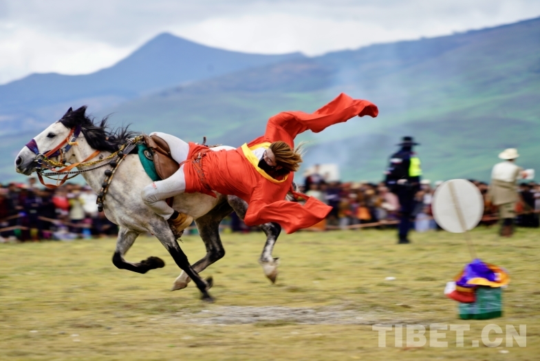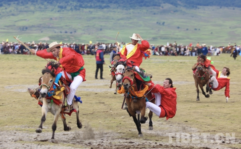 此外,來(lái)自奔戈鄉(xiāng)、禾尼鄉(xiāng)、曲登鄉(xiāng)和村戈鄉(xiāng)的馬隊(duì)還進(jìn)行了傳統(tǒng)馬術(shù)表演,馬背倒立、馬肚藏身、俯身拾哈達(dá)等精湛技藝,讓觀眾大飽眼福,充分感受到了理塘賽馬文化的魅力。