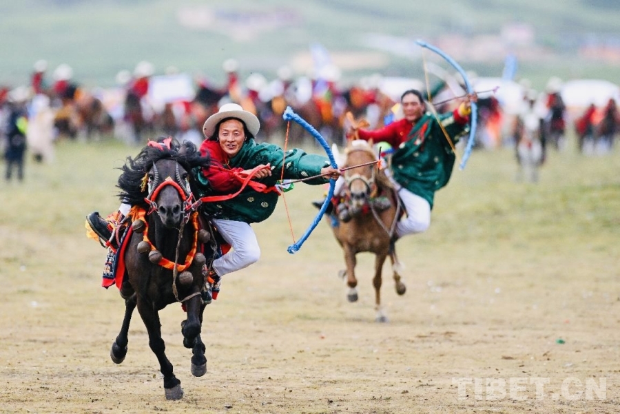 接下來,曲登鄉(xiāng)、禾尼鄉(xiāng)、村戈鄉(xiāng)騎手接連登場(chǎng),兩輪競(jìng)演,騎手們駕馭駿馬如履平地。俯身拾哈達(dá)的瞬間,身體幾乎與地面平行。“呷糾”技藝展示時(shí),騎手在馬背上輾轉(zhuǎn)騰挪,打靶環(huán)節(jié)箭矢破空,正中靶心?!斑@些騎手和馬就像是一體的,太厲害了!”現(xiàn)場(chǎng)游客張女士忍不住驚呼?,F(xiàn)場(chǎng)的觀眾也被騎手們精湛的騎術(shù)和人馬合一的表演所折服,掌聲如雷貫耳。
