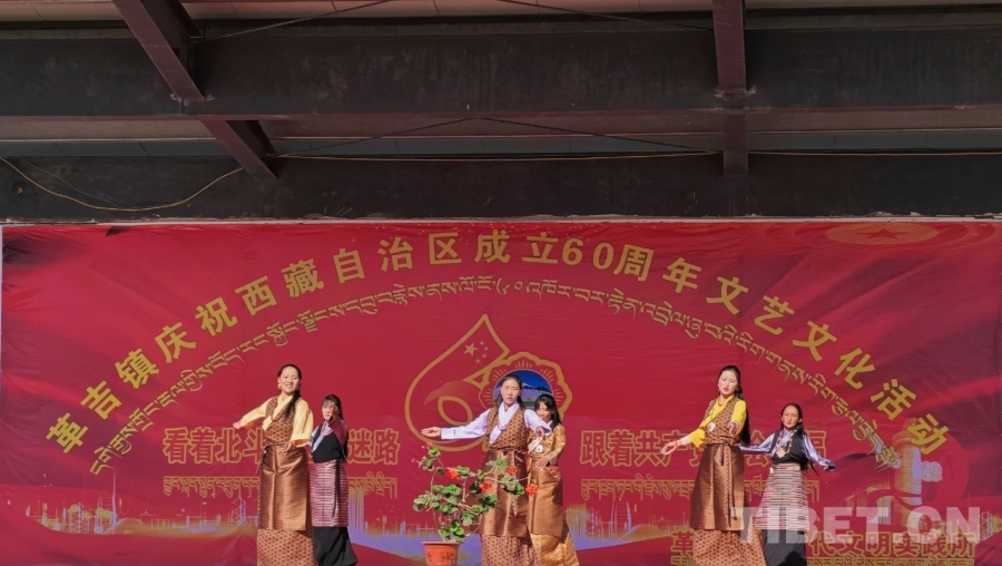 中國西藏網(wǎng)訊 金秋送爽,雪域高原處處洋溢著喜慶氛圍。8月8日,西藏阿里地區(qū)革吉縣革吉鎮(zhèn)舉行慶祝西藏自治區(qū)成立60周年文藝文化活動,400余名各族干部群眾歡聚一堂,以歌為媒、以舞寄情,在歡聲笑語中禮贊新時代、凝聚奮進(jìn)力。