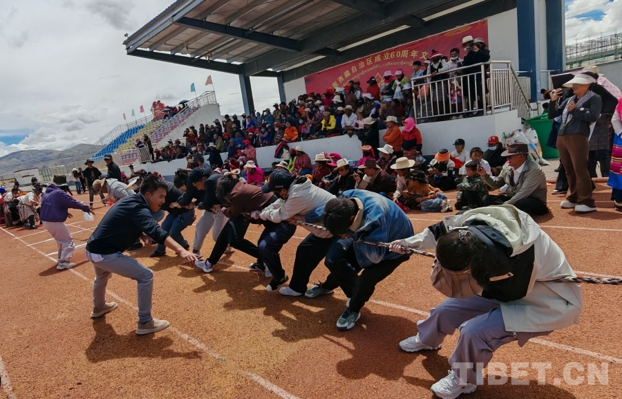 文藝演出落幕,文體活動接棒升溫。100米、200米賽道上,選手們?nèi)珉x弦之箭,奔跑中揚(yáng)起的塵土里;拔河繩兩端,隊(duì)員們腳蹬大地、身向后仰,加油的號子聲震得地上的石子都在跳;抱沙袋、押加項(xiàng)目中,選手們咬緊牙關(guān)、全力拼搏,圍觀群眾的吶喊助威聲浪一波高過一波;穿藏服拌糌粑環(huán)節(jié),大家整理衣襟、系緊腰帶,青稞粉與礦泉水在手中交融,香氣里飄著“共話家?!钡臏厍椤宽?xiàng)活動都是一次“心與心的對話”,讓團(tuán)結(jié)的種子在互動中生根發(fā)芽。