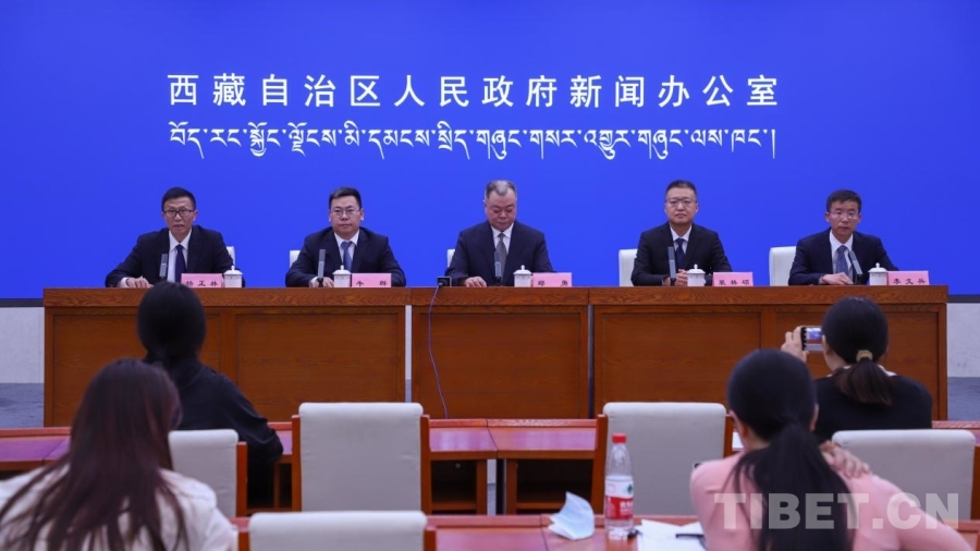 圖為“西藏自治區(qū)成立60周年”系列主題第十六場新聞發(fā)布會現(xiàn)場