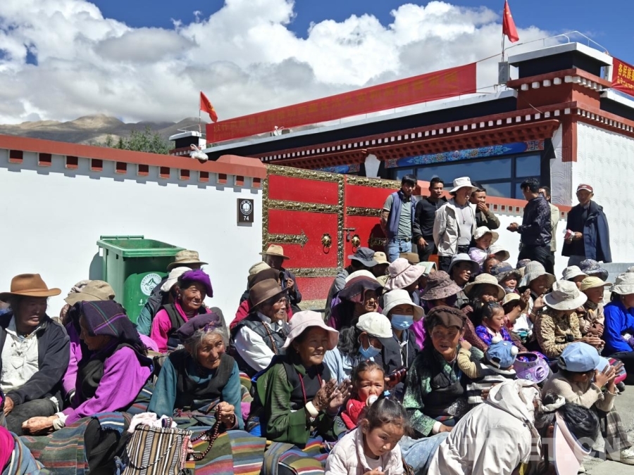 圖為8月15日,森嘎村村民正觀看入住儀式的精彩演出