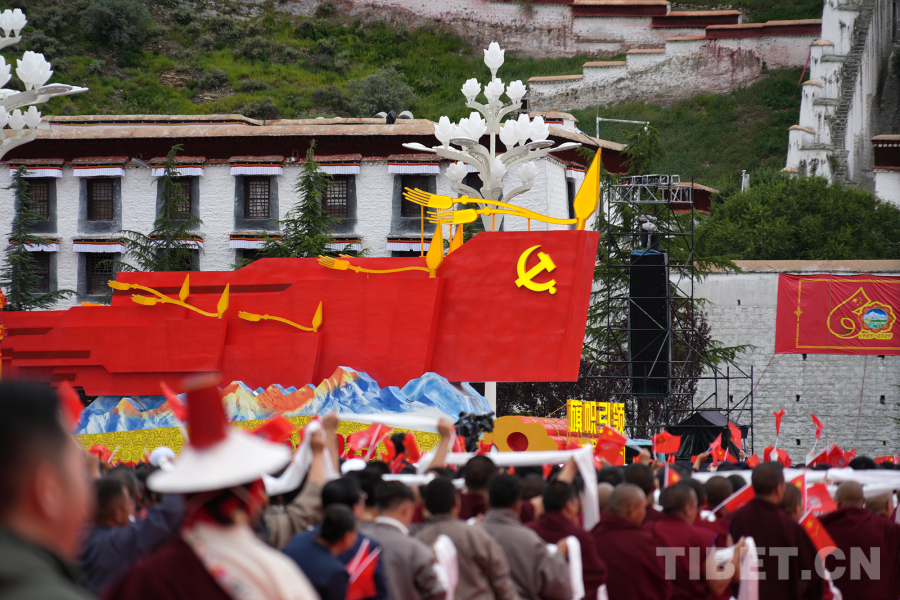 中國(guó)西藏網(wǎng)訊 西藏自治區(qū)成立60周年慶祝大會(huì)于8月21日上午10時(shí)在拉薩隆重舉行。伴隨著歡快的音樂,熱烈歡騰的群眾游行在“旗幟引領(lǐng)”彩車的帶領(lǐng)下正式開始。(中國(guó)西藏網(wǎng) 記者/王淑 馮重霖 劉莉 趙釗 姚浩然 楊眉笑 德吉卓瑪 趙振宇 賈華加 邊子捷 次旦拉姆 旦曲)