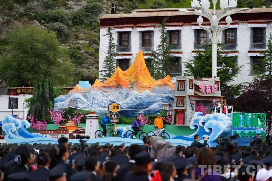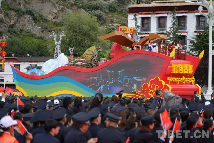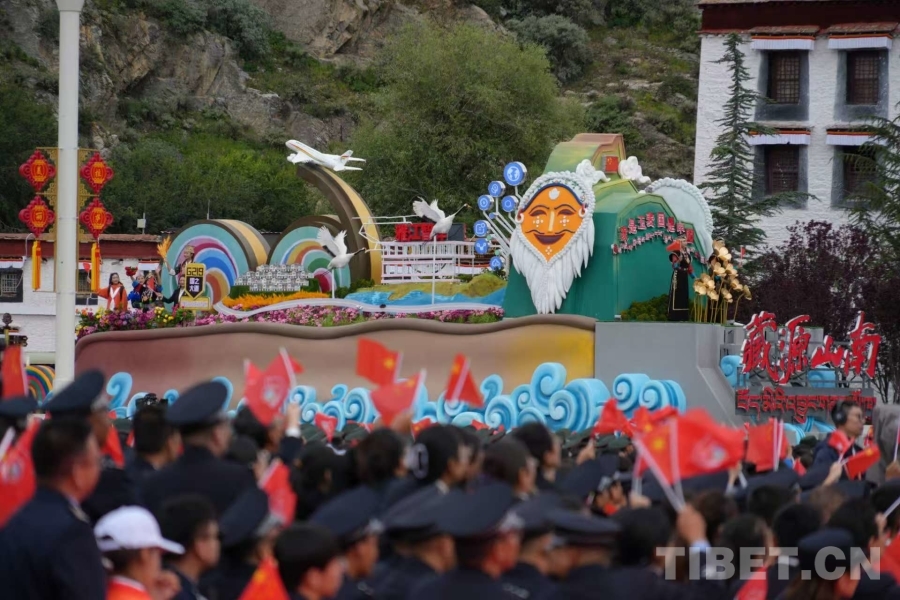 中國(guó)西藏網(wǎng)訊 西藏自治區(qū)成立60周年慶祝大會(huì)于8月21日上午10時(shí)在拉薩隆重舉行。西藏自治區(qū)七地市靚麗的主題彩車(chē)與歡歌勁舞的方隊(duì)以濃郁的地方特色令現(xiàn)場(chǎng)觀眾歡呼不斷。(中國(guó)西藏網(wǎng) 記者/王淑 馮重霖 劉莉 趙釗 姚浩然 楊眉笑 德吉卓瑪 趙振宇 賈華加 邊子捷 次旦拉姆 旦曲)
