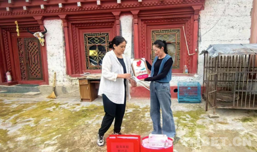 中國西藏網(wǎng)訊 近日,四川省甘孜藏族自治州得榮縣婦聯(lián)、縣文明辦工作人員來到太陽谷鎮(zhèn)松堆村,將州級“最美家庭”榮譽送到村民扎西拉姆家。這份榮譽不僅是對他們多年來在家風(fēng)建設(shè)、文化傳承、公益服務(wù)中突出表現(xiàn)的肯定,更讓新時代文明實踐的“種子”落地生根。