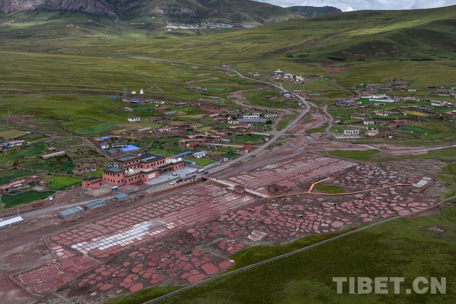 圖為航拍鏡頭下的青海省玉樹(shù)藏族自治州囊謙縣白扎鹽場(chǎng)全景 攝影:薛蒂
