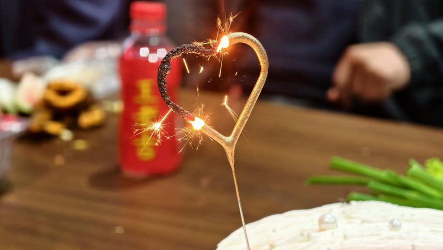 圖為在正在燃燒的愛心蠟燭點亮七夕活動