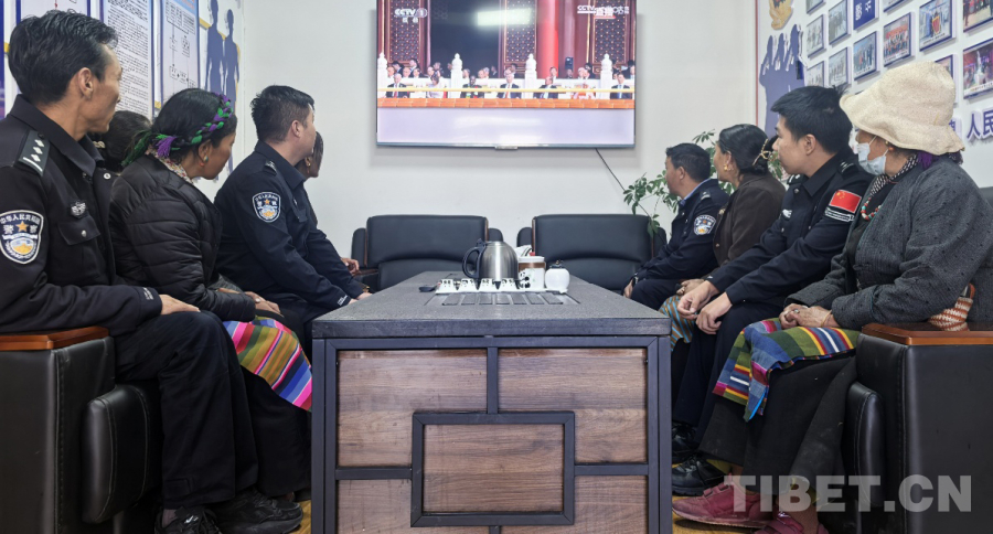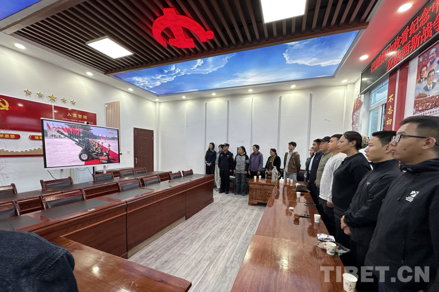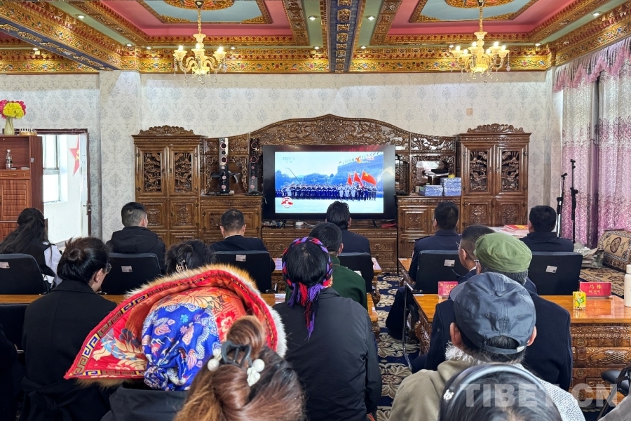 圖為日喀則邊境管理支隊仲巴邊境管理大隊帕羊邊境派出所與駐地人民政府聯(lián)合觀看紀念中國人民抗日戰(zhàn)爭暨世界反法西斯戰(zhàn)爭勝利80周年大會 攝影:次仁旺堆