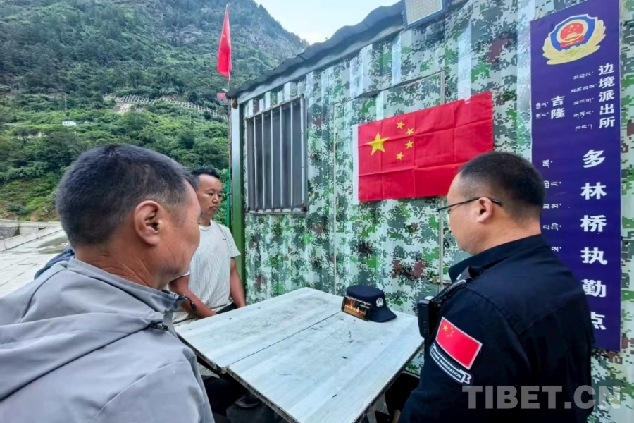 圖為日喀則邊境管理支隊吉隆邊境管理大隊吉隆邊境派出所多林橋執(zhí)勤點組織民警、護邊員和輔警觀看紀念中國人民抗日戰(zhàn)爭暨世界反法西斯戰(zhàn)爭勝利80周年大會 攝影:季韶龍