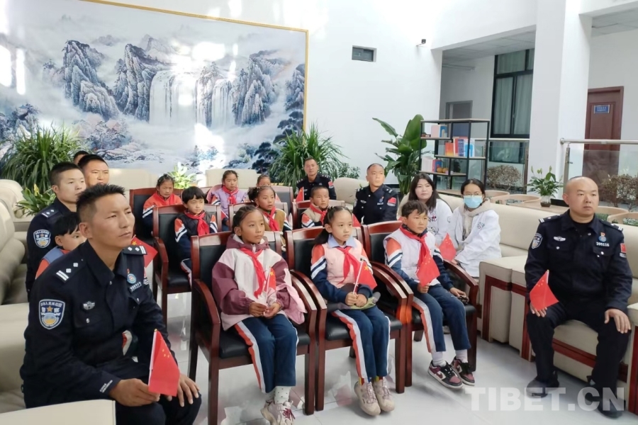 圖為日喀則邊境管理支隊康馬大隊涅如麥邊境派出所邀請學生一起觀看紀念中國人民抗日戰(zhàn)爭暨世界反法西斯戰(zhàn)爭勝利80周年大會 攝影:柳曉紅