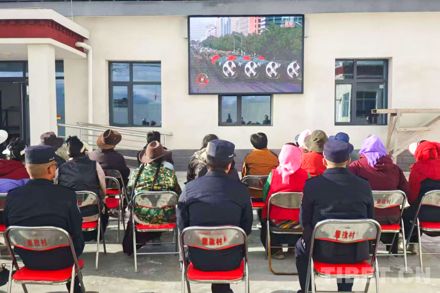 圖為日喀則邊境管理支隊崗巴邊境派出所貢巴村警務室和轄區(qū)群眾共同觀看紀念中國人民抗日戰(zhàn)爭暨世界反法西斯戰(zhàn)爭勝利80周年大會 攝影:巴桑次仁