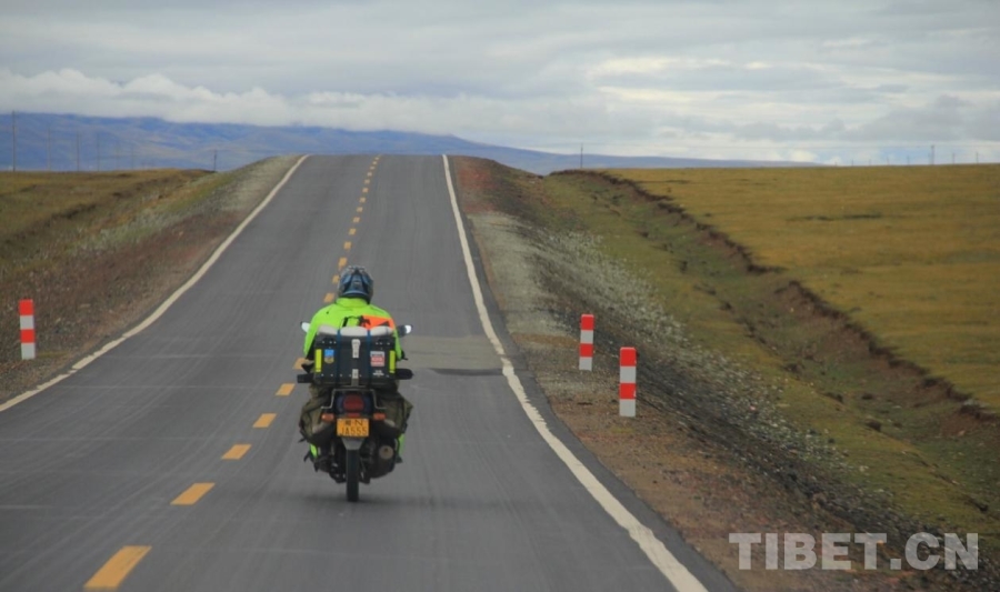 圖為從班戈縣到雙湖縣路上的一位騎行者 攝影:趙釗