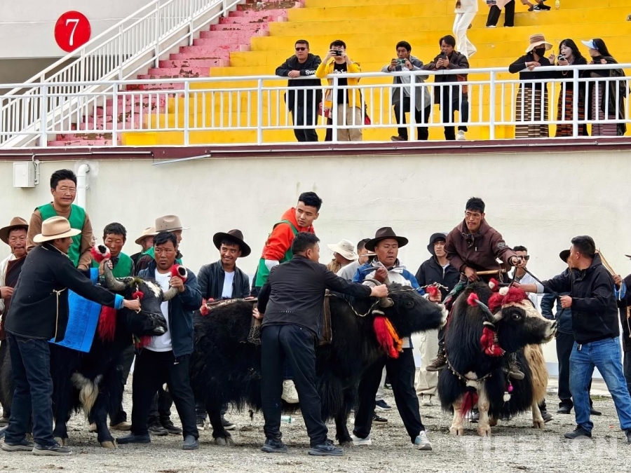 中國西藏網(wǎng)訊 9月7日,西藏自治區(qū)日喀則市江孜縣舉行了2025年達瑪節(jié)賽牦?;顒?。本次比賽吸引了來自江孜縣各鄉(xiāng)(鎮(zhèn))的30頭牦牛同場競技,現(xiàn)場氣氛熱烈,競爭激烈。
