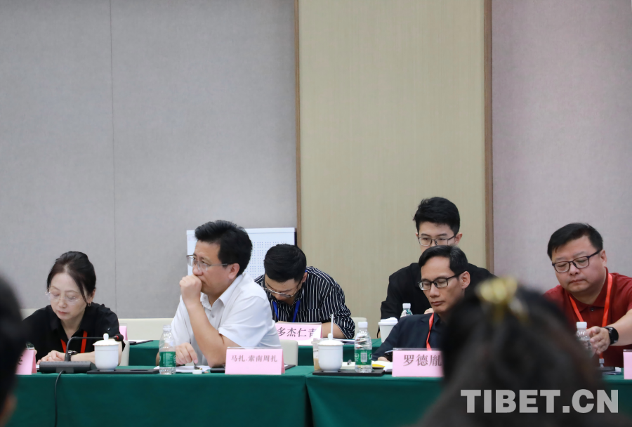 圖為馬扎·索南周扎(左二)在2025年8月北京相關(guān)座談會(huì)上聽取專家學(xué)者的交流分享 攝影:楊月云
