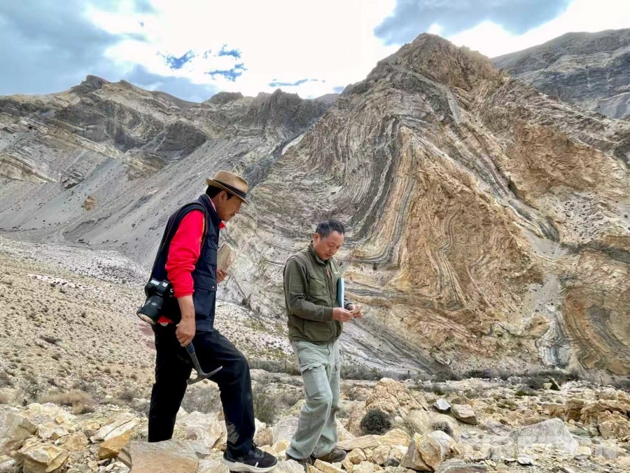 圖為俞江(左)在高原勘測地質