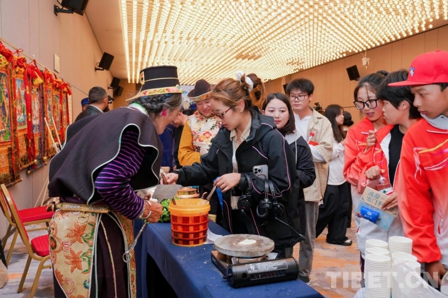 活動現(xiàn)場還設(shè)置了茶歇區(qū)、展覽閱讀區(qū)和非遺體驗(yàn)區(qū)。嘉賓們品嘗工布阿拉酒與藏式茶點(diǎn),欣賞青年藝術(shù)家畫作和林芝主題圖書,并親身體驗(yàn)藏香制作、藏文書法、藏紙拓印等非遺項(xiàng)目,多維度感受林芝文化的生機(jī)與魅力。