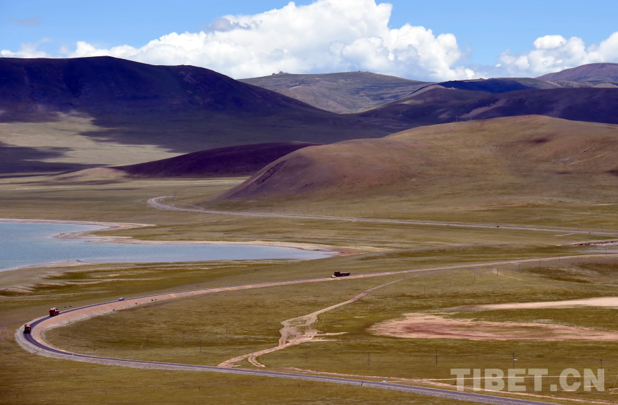 這是一條由牛羊馱隊(duì)蹄印演變而成、通往那曲西部的平坦公路。如今的汽車運(yùn)輸早已替代了過去的牛羊馱隊(duì)運(yùn)輸(唐召明2017年6月24日攝)