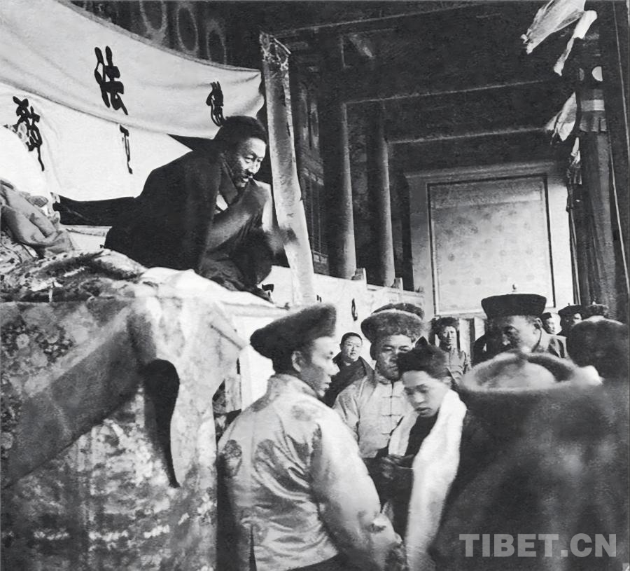 圖為九世班禪在玉樹接受僧俗信眾朝拜(1937年)