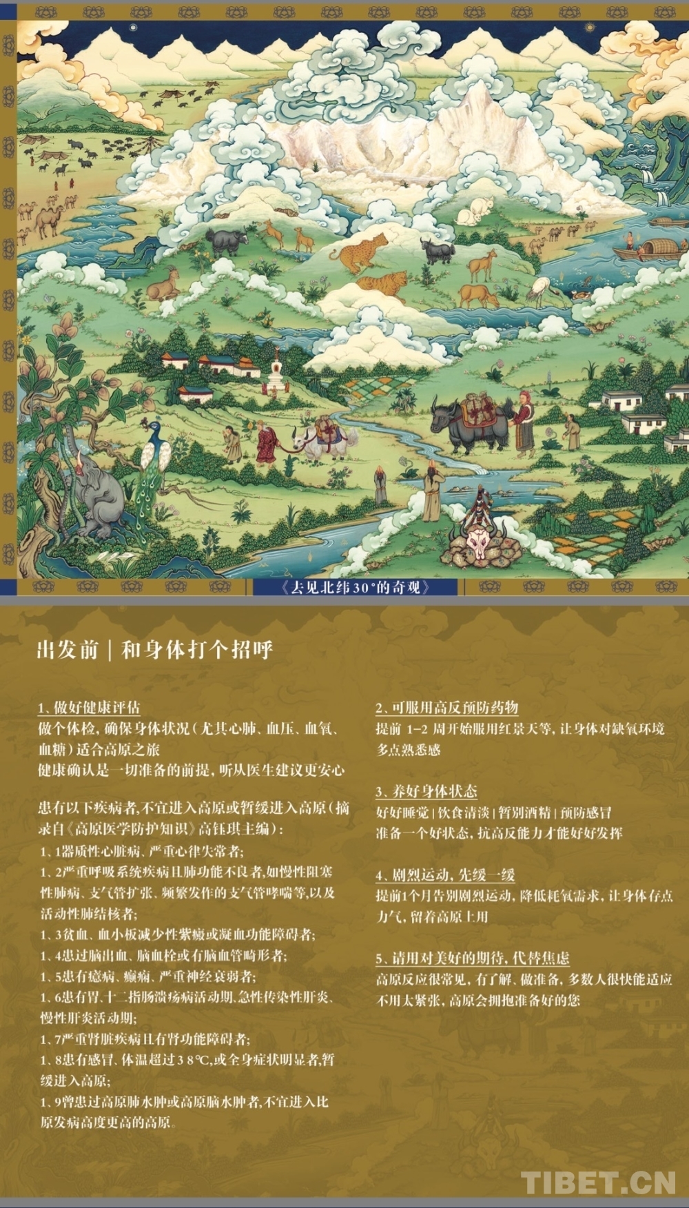 這場來自雪域高原的特別展覽,是一本《進藏健康科普指南》的濃縮。該指南以“守護生命”為主題,由西藏企業(yè)奇正藏藥發(fā)起,西藏非物質(zhì)文化遺產(chǎn)勉唐畫派代表性傳承人曲水·旦增精心創(chuàng)作的,是首份集西藏非遺唐卡藝術(shù)與進藏健康科普實用功能為一體的手冊,正在線上線下免費長期發(fā)放中。
