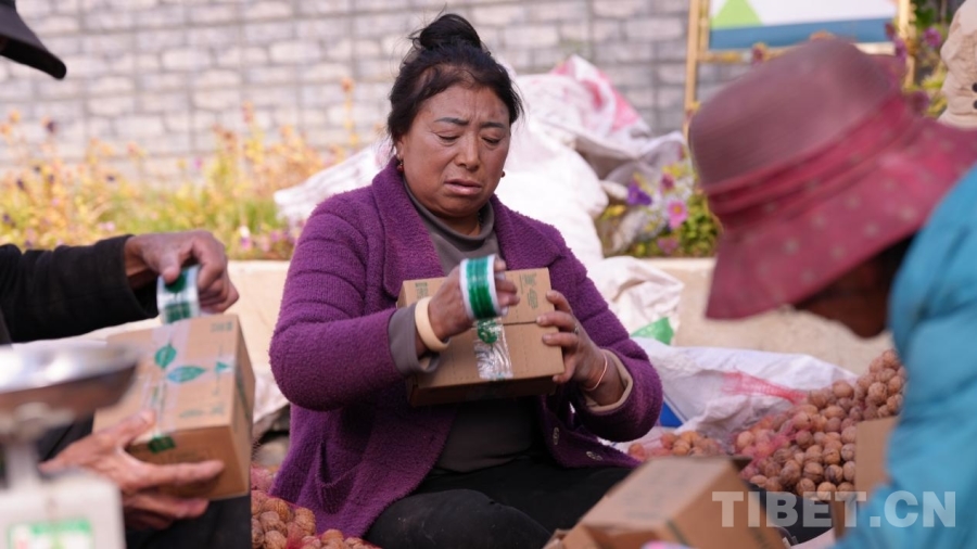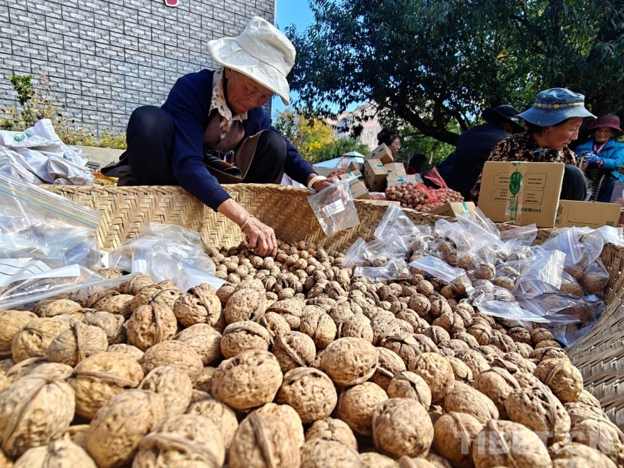 中國西藏網(wǎng)訊 10月21日,在西藏山南市加查縣安繞鎮(zhèn)拉崗村的千年核桃林內(nèi),村民們正忙碌地將今秋采收的核桃打包,準備通過電商平臺發(fā)往全國各地的顧客手中。