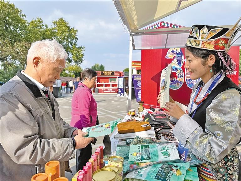 資料圖:第五屆“格?;ㄩ_·南京墨竹周”上南京市民在寧墨市集選購青稞 圖片來源:西藏日報(bào)
