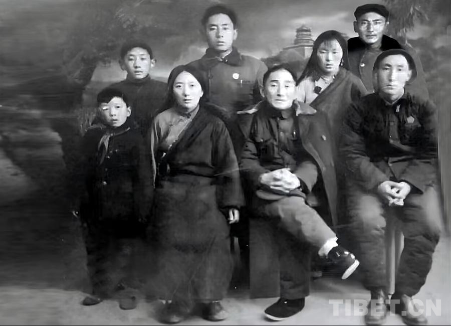 圖為米福堂全家福(1962年),前排左三為米福堂,左二為夫人布莎西拉措(布莎瓊?cè)R之妹,為布莎瓊?cè)R去世后續(xù)娶),左四為長(zhǎng)子旺斗昂布,后排左一為五子土登嘉措,左二為次子米扎西,左三為長(zhǎng)女德慶,左四為三子久甫。