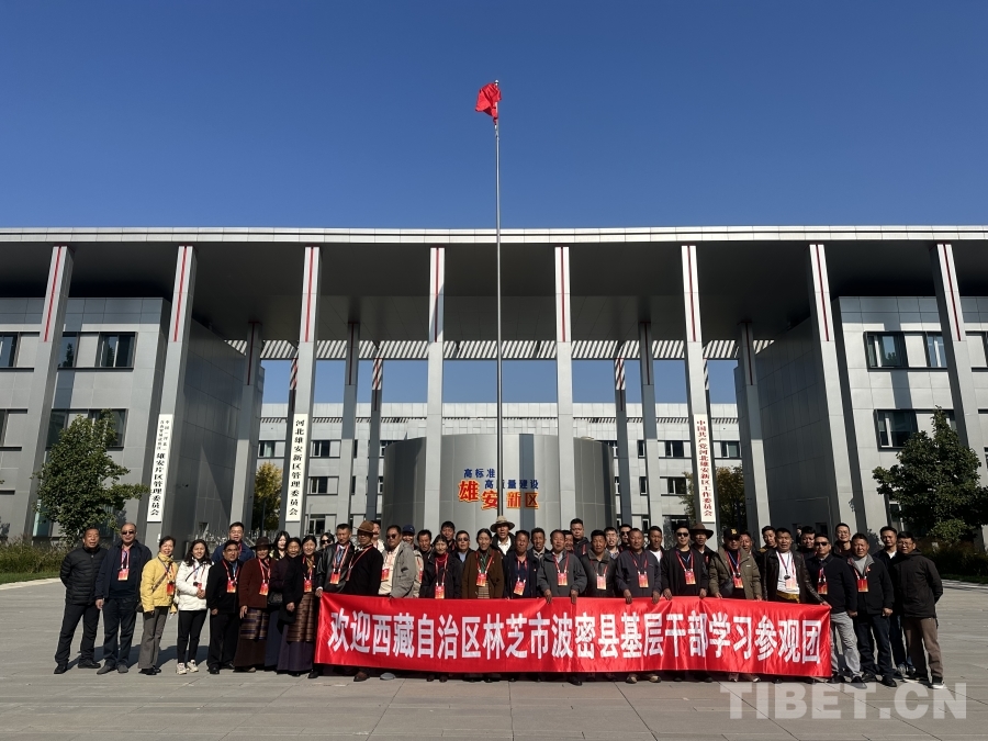 圖為西藏自治區(qū)林芝市波密縣基層干部學(xué)習(xí)參觀團(tuán)在雄安新區(qū)規(guī)劃展示中心合影 攝影:李文治