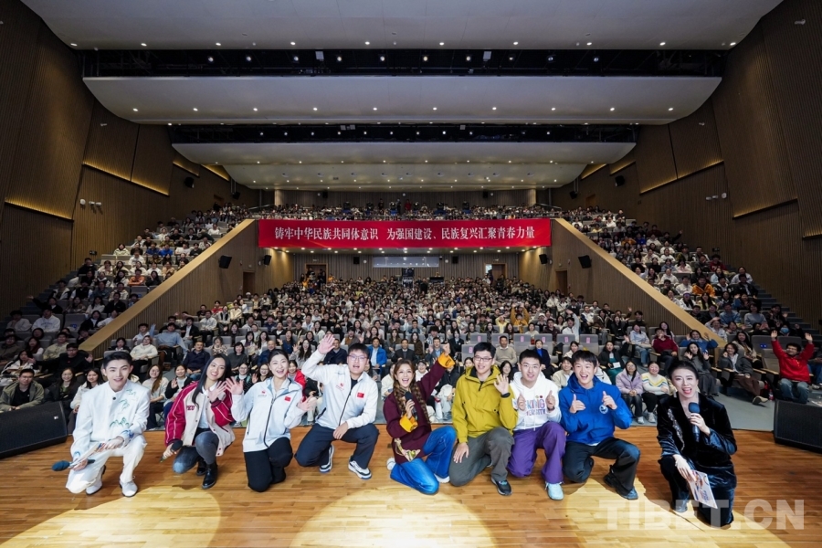 文化展演環(huán)節(jié)同樣精彩紛呈,為整場活動注入了濃郁的民族風(fēng)情。來自西藏那曲、阿里地區(qū)的演員們身著特色服飾登場,用極具感染力的藏族歌舞點燃全場。濃郁的民俗風(fēng)情隨著表演鋪展開來,將現(xiàn)場氛圍一次次推向高潮,也讓在場師生沉浸式走進西藏非遺文化,真切感受到西藏藝術(shù)的獨特魅力。
