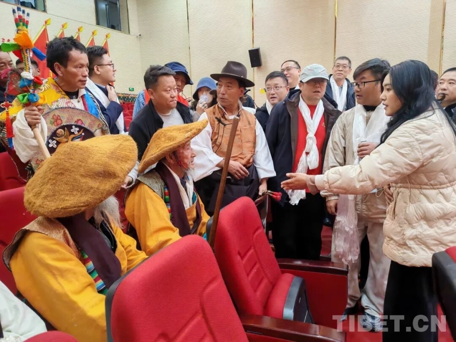 在南木林縣湘巴文化藝術中心內(nèi),南木林鎮(zhèn)雪藏戲隊的演員們頭戴色彩鮮艷的五彩面具,將經(jīng)典藏戲《智美更登》選段演繹得蕩氣回腸。高亢唱腔極具穿透力,粗獷又滿含張力的舞步踏在舞臺上,每一步都踩出湘巴藏戲的獨特韻味。接著,《格薩爾說唱》的雄渾敘事、《土布加諧慶》的歡快韻律、《扎木念》的悠揚曲調(diào)一一上演,一場非物質(zhì)文化遺產(chǎn)的盛宴令調(diào)研組成員陶醉。他們的手機鏡頭緊緊追隨演員,將精妙的表演、動人的唱腔定格。表演間隙,調(diào)研組的藝術家們與演員圍坐在一起,圍繞表演技巧展開深入交流,探討唱腔中氣息的綿長運用,研究舞步里節(jié)奏的細微變化。在思想的碰撞中,藏戲藝術的傳承創(chuàng)新脈絡愈發(fā)清晰。