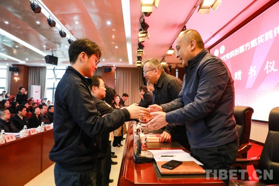 在贈書儀式前,西藏自治區(qū)黨委黨校(區(qū)行政學(xué)院)副校(院)長仁欽旺杰介紹了《新時代黨的治藏方略研究》出版情況,四川師范大學(xué)教授孫勇圍繞該書展開點評。該書是全面系統(tǒng)闡釋新時代黨的治藏方略的理論著作,為新時代黨的治藏方略研究注入新的活力與動力,具有重要的理論價值和現(xiàn)實意義。