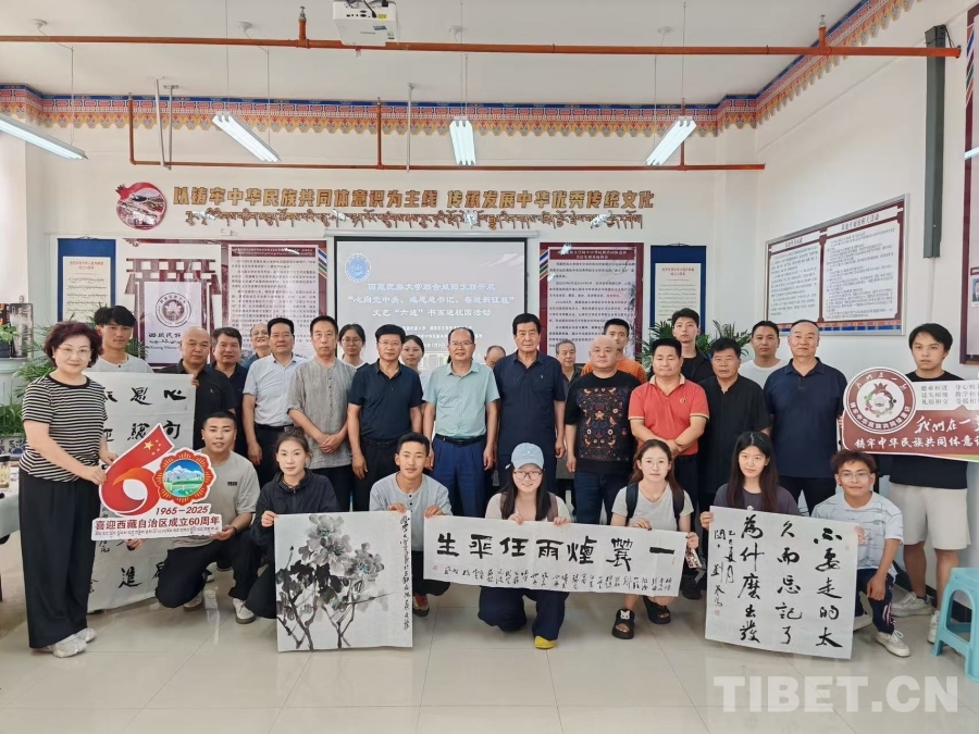 圖為西藏民族大學聯(lián)合陜西省咸陽市文聯(lián)開展“心向黨中央、感恩總書記、奮進新征程”活動合影