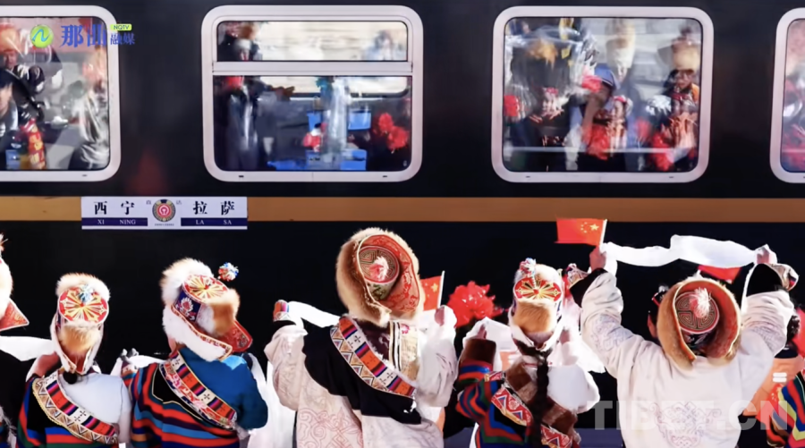 圖為首批旅客在雁石坪乘降所乘車遠行 圖源:那曲融媒
