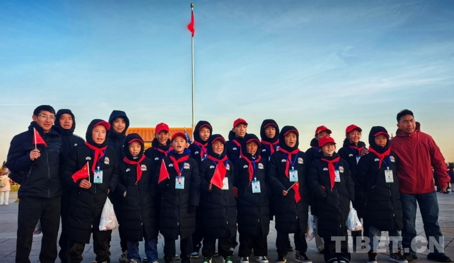 “祝祖國繁榮昌盛!扎西德勒!”12月26日清晨的天安門廣場(chǎng),來自西藏自治區(qū)那曲市色尼區(qū)青少年足球隊(duì)的少年們?cè)趧倓傆柹鸬奈逍羌t旗下,一起大聲為祖國送出衷心的祝福。