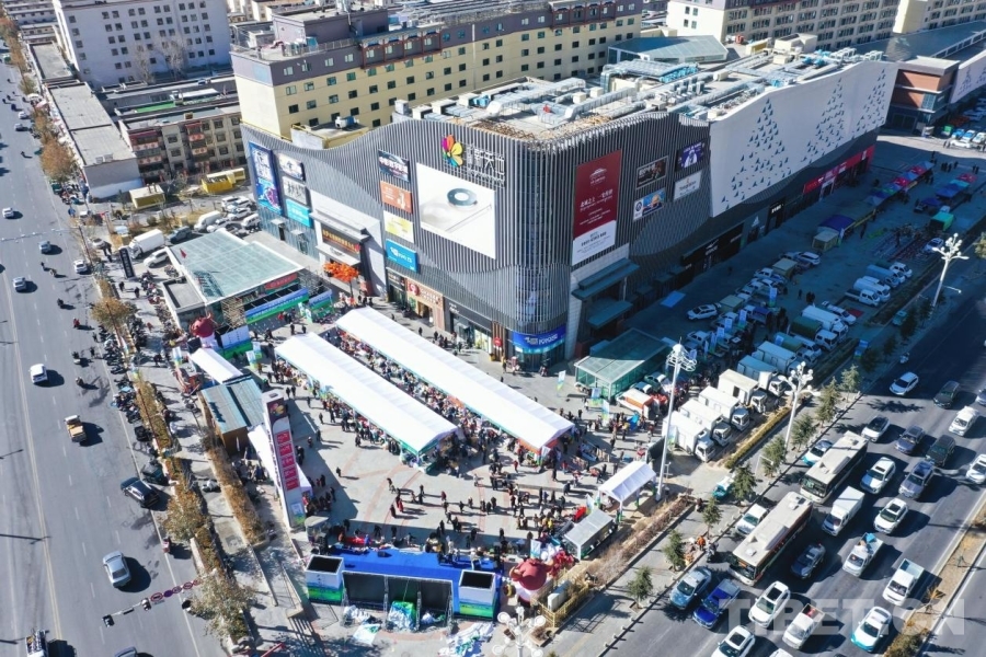 圖為那曲市第三屆中部四縣(區(qū))區(qū)域協(xié)作發(fā)展畜產(chǎn)品展銷會熱鬧景象