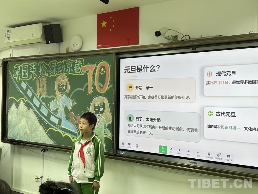 為了歡迎遠(yuǎn)道而來的藏族小伙伴,翠微小學(xué)全體師生精心籌備了以“石榴花開別樣紅,民族團(tuán)結(jié)一家親”為主題的系列交流活動(dòng)。30日上午,一場(chǎng)特殊的聯(lián)合隊(duì)會(huì)拉開了深入交流的序幕。在隊(duì)會(huì)上,兩地孩子相互佩戴紅領(lǐng)巾、敬獻(xiàn)潔白哈達(dá),以最莊重又親切的禮節(jié)表達(dá)彼此間的尊重與祝福。大家共同觀看回顧雙方從寫信相識(shí)到奔赴北京、準(zhǔn)備禮物、期待相見的溫情短片,聆聽關(guān)于漢族元旦節(jié)日習(xí)俗和藏民族游牧文化的生動(dòng)介紹,在增進(jìn)了解中深化認(rèn)同。